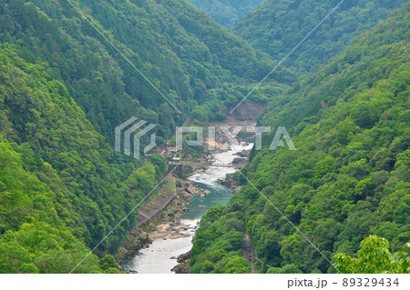 嵯峨嵐山・六丁峠より夏の保津峡を俯瞰する
