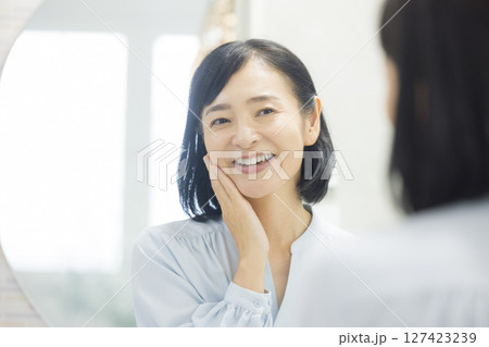 鏡を見るミドル女性