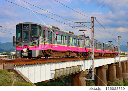 【ハピラインふくい】521系〜特別塗装〜(ハピラインふくい線:鯖江〜武生・日野川橋梁)