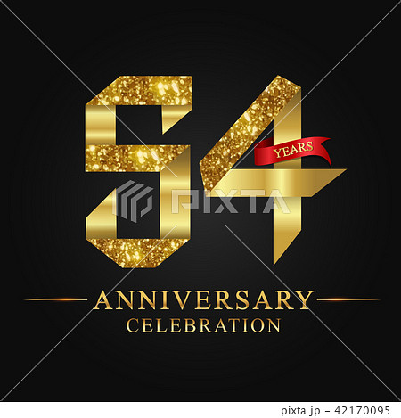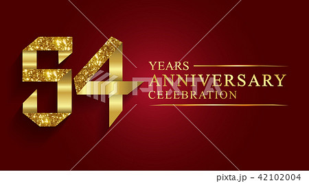 54 years anniversary logo ribbon golden number.