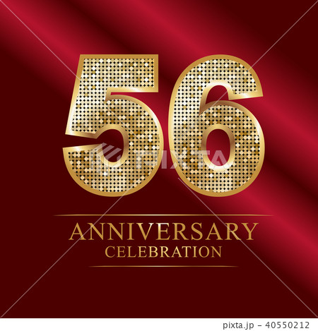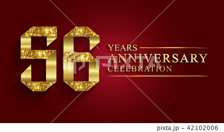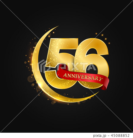 56 years anniversary logo ribbon golden number.