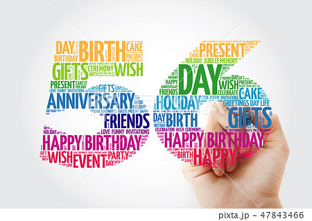 Happy 56st birthday word cloud with marker