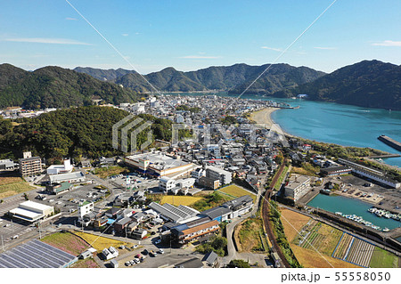 須崎市須崎港の町並み空撮