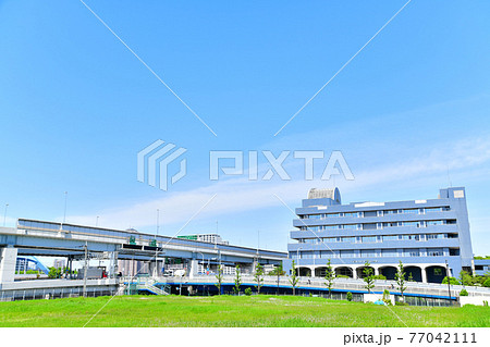 日本の東京都市景観 6月。東急電鉄 駒沢大学駅 西口などを望む