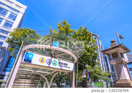 日本の東京都市景観 東京・表参道。東京メトロ 表参道駅などを望む