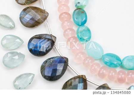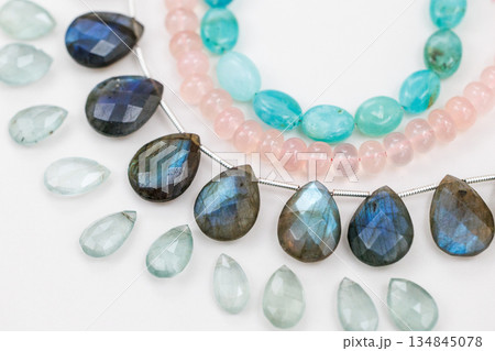 ブルームーンストーンの雫型ビーズ|シラーが輝く天然石の素材写真