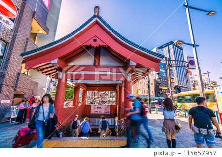 日本の東京都市景観 外国人観光客で賑わう浅草寺をモチーフにした銀座線浅草駅出入口4などを望む=3日