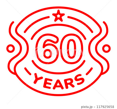 60 years anniversary vector icon, logo. Isolated line art design with number