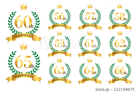 56~66周年イラスト 月桂樹の葉と王冠とリボンのマーク アイコンセット