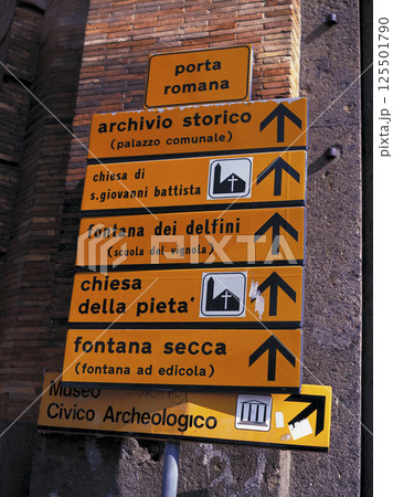 イタリア ローマ郊外の都市カンパニャーノ・ディ・ローマ旧市街地に入る門に取り付けられた標識