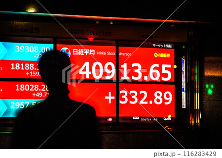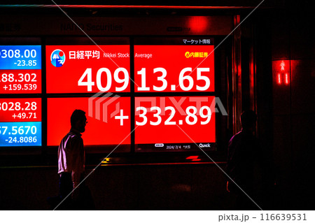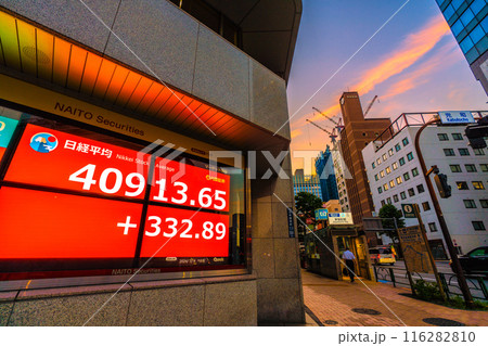 日本の東京都市景観 4万円突破の日経平均を更新4万913円65銭…株価ボード/終値=4日、日本橋兜町