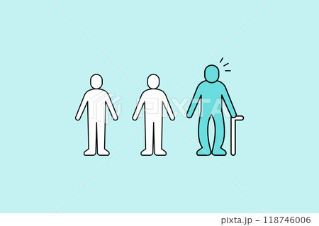 現役世代と高齢者のシンプルなベクターアイコンイラスト。少子高齢化。
