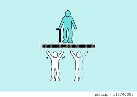 高齢者を支える、税金の負担に押しつぶされそうな人々のシンプルなベクターイラスト。少子高齢化。