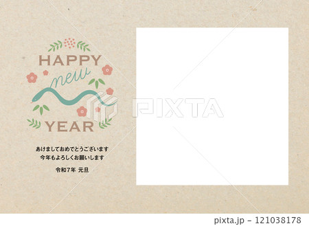 2025フォトフレーム年賀状「白へびと松」ハッピーニューイヤー 添え書き付