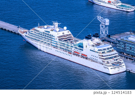 日本の横浜都市景観初入港した新港ふ頭のシーボーン・クエストなどを望む=30日
