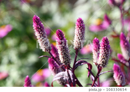 赤紫色の花が穂状に咲き、次第に銀白色に変化するセロシア‘ルビーパフェ’