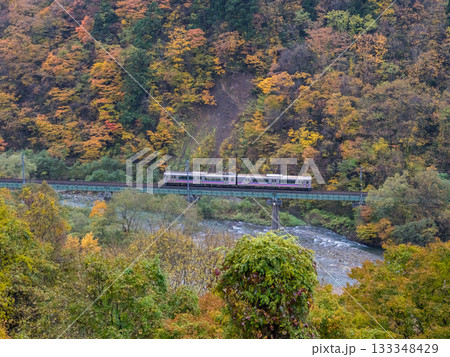 【田沢湖線】紅葉する渓谷を通過する普通列車