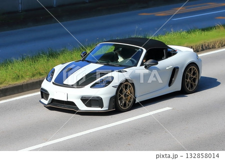 爽やかな白いオープンカー ポルシェ718ボクスター