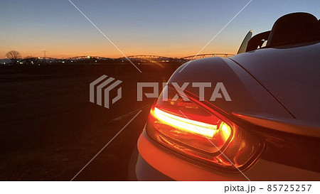 夕焼け空とポルシェ718ボクスター オープンカー コンバーチブル