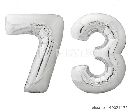 Silver number 73 seventy three made of inflatable balloon isolated on white