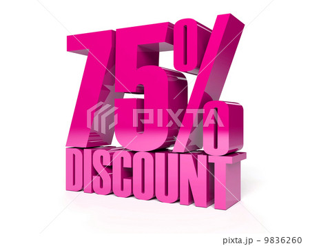 75 percent discount. Pink shiny text. Concept 3D illustration.