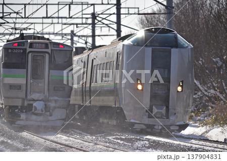 複々線区間を行き交う特急「ライラック」と「北斗」