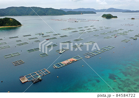 奄美の久根津港の養殖場の空撮