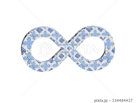 無限大マーク 青いタイル柄のインフィニティマークの3Dイラスト