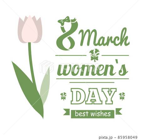White Tulip, Womens Day, Best Wishes Card Vector