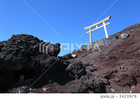 富士登山富士宮ルート九合目より山頂の鳥居を見る
