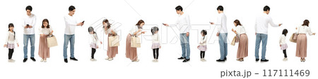 ショッピング幼児女の子ファミリー家族の全身人物切り抜き素材
