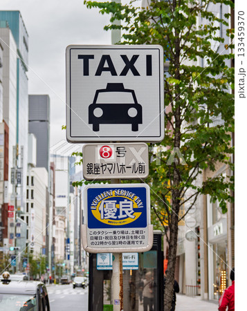 銀座のタクシー乗車禁止地区にある指定タクシー乗り場の標識(優良タクシー乗り場8号)