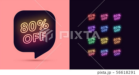 Neon Discount Tag, 80 Percentage Off. Offer Sale