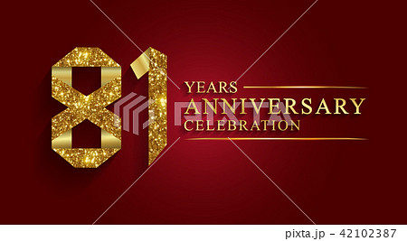 81 years anniversary logo ribbon golden number.