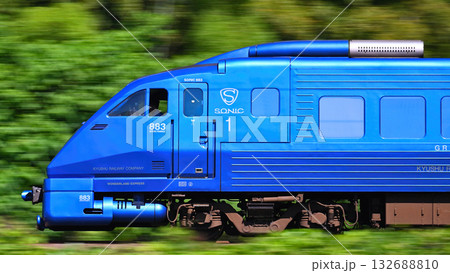 緑の中を疾走するJR九州の特急ソニック