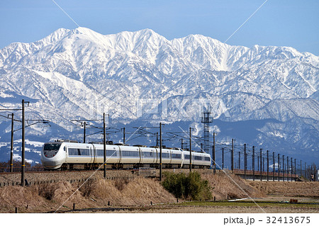 立山連峰をバックに走る683系8000番台特急はくたか9両