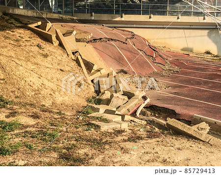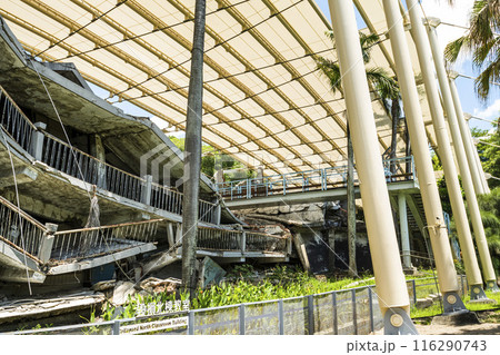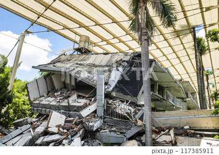 View of the 921 Earthquake Museum of Taiwan in Taichung, Taiwan, here is one of the ruins destroyed by the 921 earthquakes.