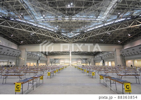 コロナ禍でのコミックマーケット設営中の東京ビッグサイト東ホール
