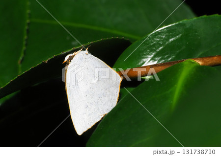 生き物 昆虫 ウラギンシジミ、メスがスダジイの葉の上で日向ぼっこ中。成虫で越冬します