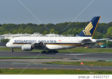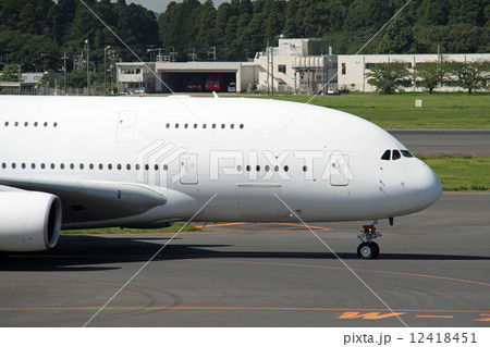 成田空港へ着陸後駐機場へ向かうエアバスA380 旅客機