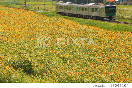 ひまわり畑を走る烏山線