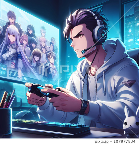 ヘッドセットを付けている男性 ゲーム 実況 配信 リモートワーク 素材