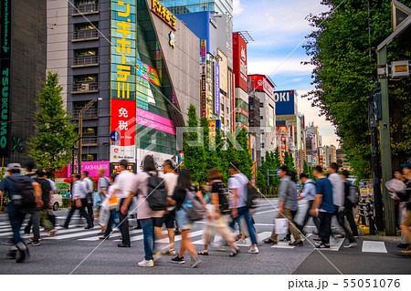日本の東京都市景観 東京・秋葉原。梅雨の晴れ間=2019年7月17日撮影
