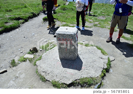 フランスとスイスの国境を示すバルム峠の標石。FRANCE側の表示