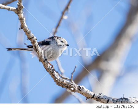 枝に止まりみつめるシマエナガ