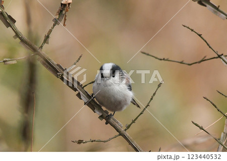 生き物 鳥類 エナガ、獲物にロックオン。いつも小さな虫を探して動き回っています。