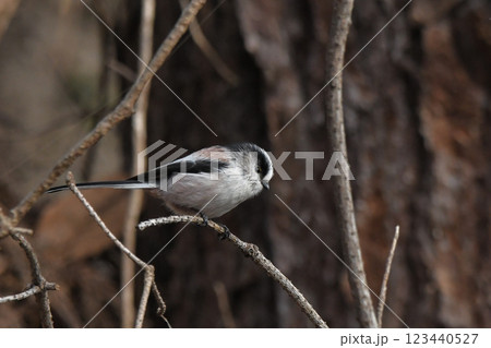 生き物 鳥類 梅の木の枝の間を飛ぶエナガ
