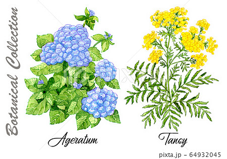 Design set of Ageratum and Tansy flowers isolated on white Watercolor hand drawn botanical illustration with floral elements. See my full collection of plants