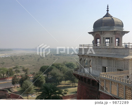 世界遺産 アグラ城から見たタージ・マハル インド アグラ