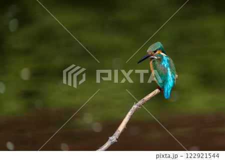 【カワセミ】枝に留まっているカワセミの雄 パノラマ